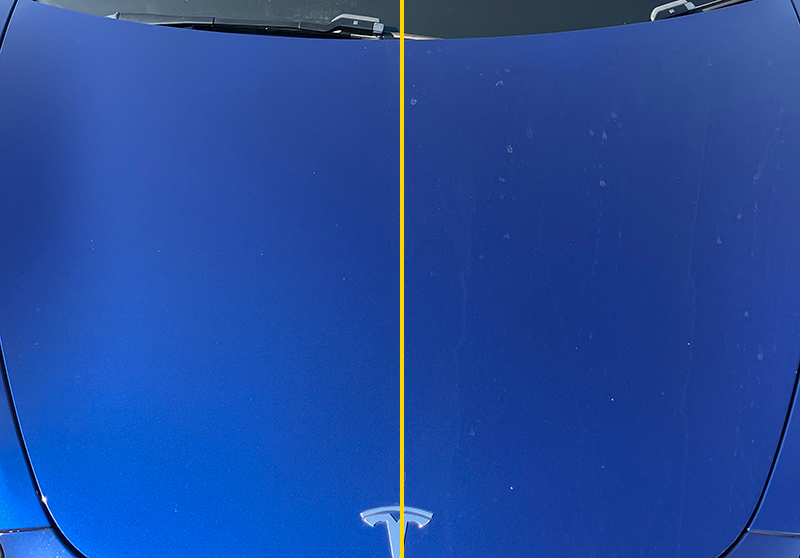 同一車両を水道水と純水で洗車し、自然乾燥させた場合の比較