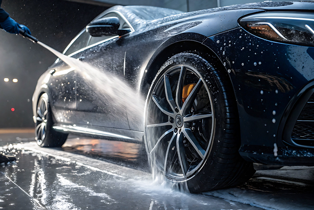 純水洗車は、水道水や地下水に含まれるミネラルを取り除いた「水シミの残らない水」を使用することで、この負担を大幅に軽減します。